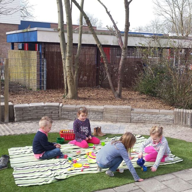 De inrichting van de ruimte daagt uit tot spel. De ruimte is zo ingericht, dat kinderen zelf de materialen en het speelgoed kunnen pakken waar ze mee willen spelen. Er zijn actieve hoeken, maar ook rustplekken gecreƫerd. We streven naar een sfeer van huiselijkheid en gezelligheid.